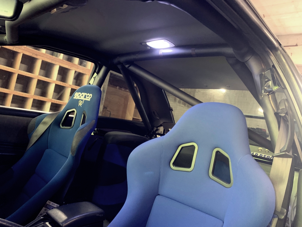 競技車としてのクオリティは高いのですが、全体的に塗装状態があまり良くなかったためにカーボンラッピングを施しました。大型フォグランプも装着されてなかなか迫力の外観です。外観は弊社FBページでも少し紹介しています。